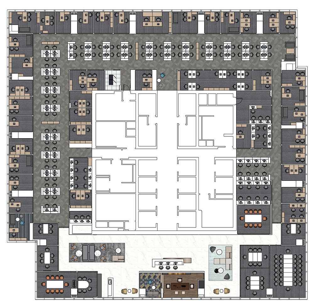 新的空間猶如一張空白紙張,它可以轉(zhuǎn)化一切,可以讓設(shè)計(jì)團(tuán)隊(duì)靈感自由釋放,創(chuàng)造一個(gè)心靈渴望的空間。設(shè)計(jì)團(tuán)隊(duì)與客戶緊密合作,通過(guò)品牌元素的創(chuàng)新表達(dá)去體現(xiàn)樂(lè)府互娛非凡的品牌文化。工作區(qū)規(guī)劃包括固定的辦公區(qū)、同時(shí)配有靈活/協(xié)作的區(qū)域可供工作和休閑、以及各種形式的私密專注空間/會(huì)議室。